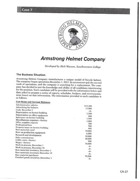 JMW - Reading Online CASE 7 ARMSTRONG HELMET COMPANY SOLUTION Doc Gutenberg